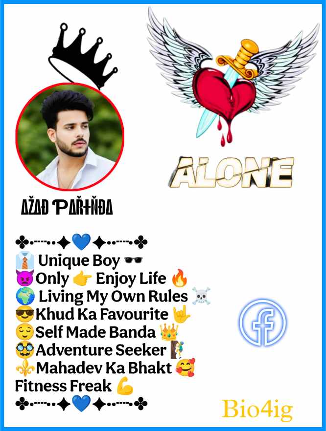 अगर आपको अपने फेसबुक बायो के लिए एक एटीट्यूड और स्टाइलिश Facebook VIP Bio Text Copy चाहिए तो इस लेख को अंत तक जरूर पढ़ना। यहां पर आपको सबसे बेहतरीन और स्टाइलिश Facebook Bio मिलेंगे जो आपके फेसबुक बायो में सबसे ज्यादा अच्छे और परफेक्ट दिखेंगें। यहां पर मैंने वो सभी Bios दिए हैं जिसकी आपको तलाश है।
