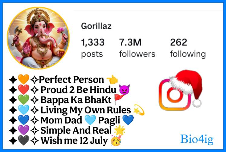 अगर आपको अपने इंस्टाग्राम बायो के लिए एक एटीट्यूड और स्टाइलिश Shree Ganesha Instagram Bio चाहिए तो इस लेख को अंत तक जरूर पढ़ना। यहां पर आपको सबसे बेहतरीन और स्टाइलिश Shree Ganesha Bio मिलेंगे जो आपके इंस्टाग्राम बायो में सबसे ज्यादा अच्छे और परफेक्ट दिखेंगें। यहां पर मैंने वो सभी Bios दिए हैं जिसकी आपको तलाश है।